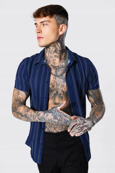 Boohoo Mintás Rövid Ujjú Ing, Size XS, SötétkékALLEGRO