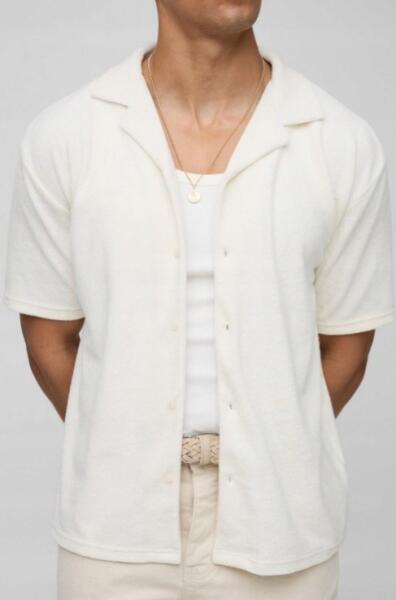 Boohooman Ekrü Ing Törölköző Rövid Ujjú Gombos Gallér Boohooman MALLEGRO
