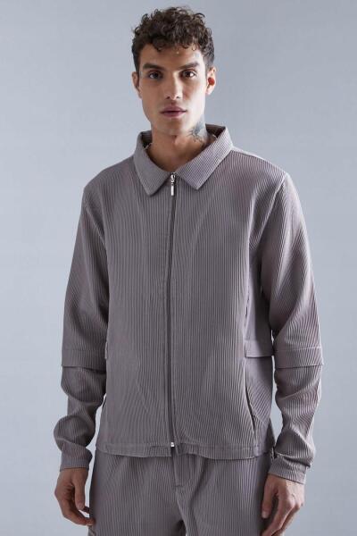 Boohooman T41210 Boohoo Fodros Férfi Ing Cipzáras Zsebekkel MALLEGRO