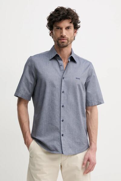 BOSS Orange pamut ing férfi, galléros, sötétkék, regular, 50537332 - sötétkék M