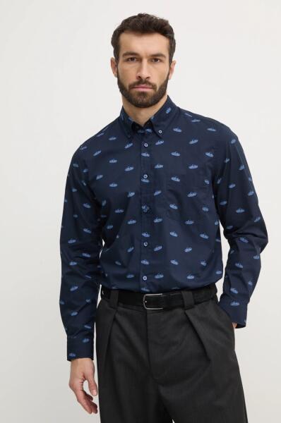 BOSS Orange pamut ing férfi, legombolt galléros, sötétkék, regular, 50530835 - sötétkék L