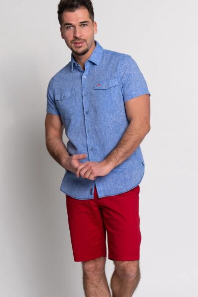 modern fit rövid ujjú férfi ingenyhén szűkített szabásúkényelmes, jól szellőző anyagbólhímzéssel és szövött címkével díszített