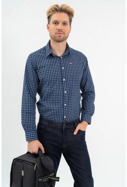 modern fit hosszú ujjú férfi ing enyhén szűkített fazonhímzéssel és szövött címkével díszítve