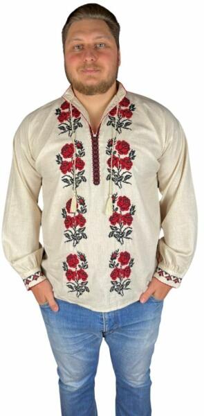 Hagyományos Román Hímzett Férfi Blúz - Elegancia és Kényelem Egyben! ?? Ez a bézs színű, vörös hímzéssel díszített férfi blúz a román népművészet szépségét hozza el a ruhatáradba. A 100% természetes pamutból készült anyag biztosítja a kényelmes viseletet minden évszakban. Tökéletes választás különleges alkalmakra és a mindennapokra egyaránt. Főbb jellemzők:Anyag: 100% természetes pamut ? Szín: Bézs, hagyományos vörös hímzéssel ? Fazon: Laza, kényelmes szabás ? Ujjak: Hosszú ujjú, hímzett részletekkel ✨ Gallér: Kerek gallér, állítható húzózsinórral ? Alkalom: Ideális tavaszra és őszre ? Méretek: S, M, L, XL, 2XL, 3XL Előnyök:Lélegző anyag: A természetes pamut ideális az érzékeny bőr számára. ? Kézzel készített hímzés: A gondosan kidolgozott hímzés ellenáll a mosásnak. ? Sokoldalú viselet: Viselhető lenvászon nadrággal, farmerrel vagy hagyományos ruhákkal. ? Alkalmakra: Tökéletes fesztiválokra, kulturális rendezvényekre, nemzeti ünnepekre vagy román témájú ajándékokhoz. ? Mérettáblázat:Méret Európai méret Mellbőség Hossz UjjhosszS 40 100-105 cm 70 cm 56 cmM 42 106-110 cm 71 cm 57 cmL 44 111–115 cm 72 cm 58 cmXL 46 116-120 cm 73 cm 59 cm2XL 48 121-125 cm 74 cm 61 cm3XL 50 126-130 cm 75 cm 63 cmÁpolási útmutató: Kézzel vagy géppel mosható max. 30 °C-on ? Mosás előtt fordítsa ki ? Ne szárítsa szárítógépben ? A hímzés védelme érdekében közepes hőmérsékleten, kifordítva vasalja. ?️