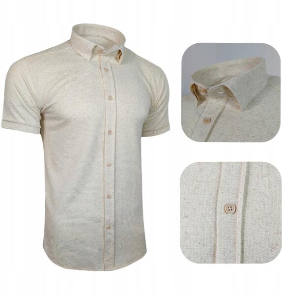 Férfi rövid ujjú pamut lenvászon ing Kötött bézs méret M