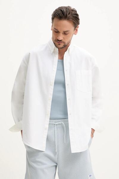 HUGO Blue pamut ing férfi, legombolt galléros, fehér, relaxed, 50534183 - fehér XL