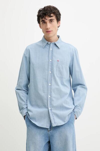 HUGO BOSS pamut ing férfi, galléros, regular, 50539312 - kék XL