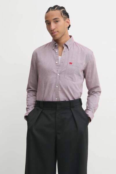 HUGO BOSS pamut ing férfi, legombolt galléros, rózsaszín, slim - rózsaszín M