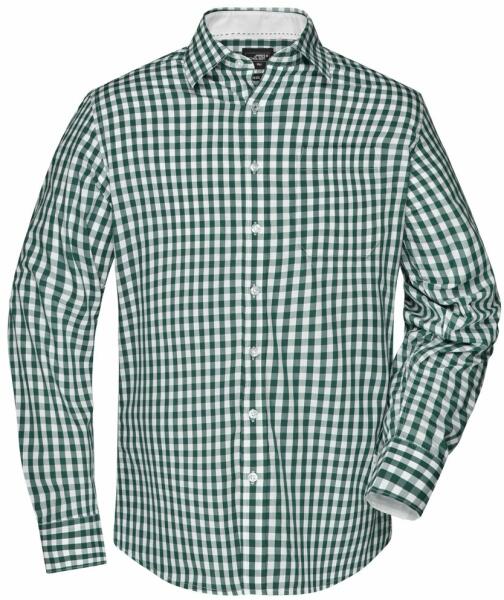James & Nicholson (Daiber) Férfi kockás ing JN617 - Erdei zöld / fehér | 3XL (1-JN617-1709324)