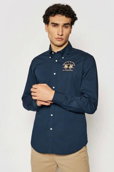 La Martina normál szabású ing hímzett logóval CCMC01 3XL INTL Sötétkék