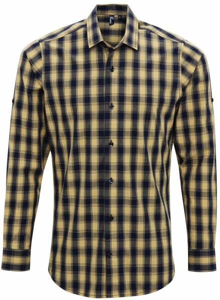 Premier Workwear Férfi pamut kockás ing - Camel / sötétkék | XL (PR250-1000226898)