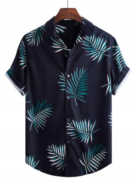Shein Sötétkék Klasszikus Rövid Ujjú Ing Levél Mintával Shein S