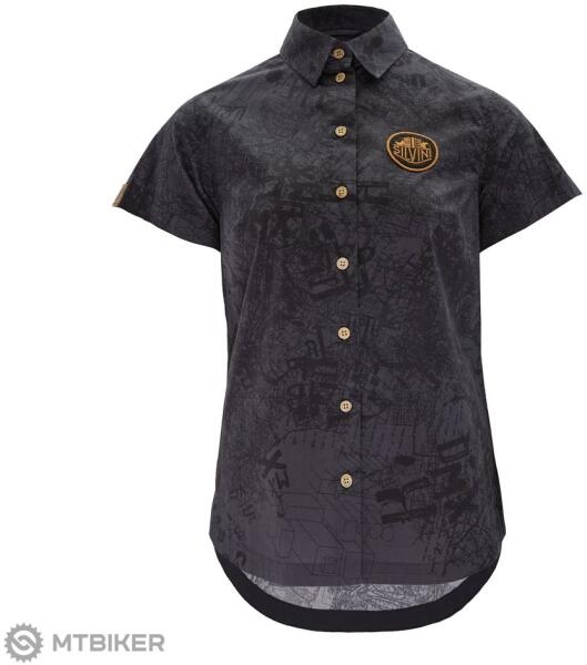 Női rövid ujjú városi kerékpáros ing könnyű funkcionális pamut gombokkal, Prága térképpel és graffiti elemekkel.