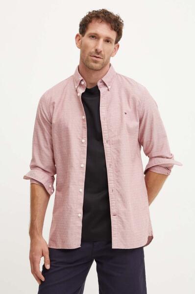 Tommy Hilfiger pamut ing férfi, legombolt galléros, piros, slim, MW0MW35769 - rózsaszín M